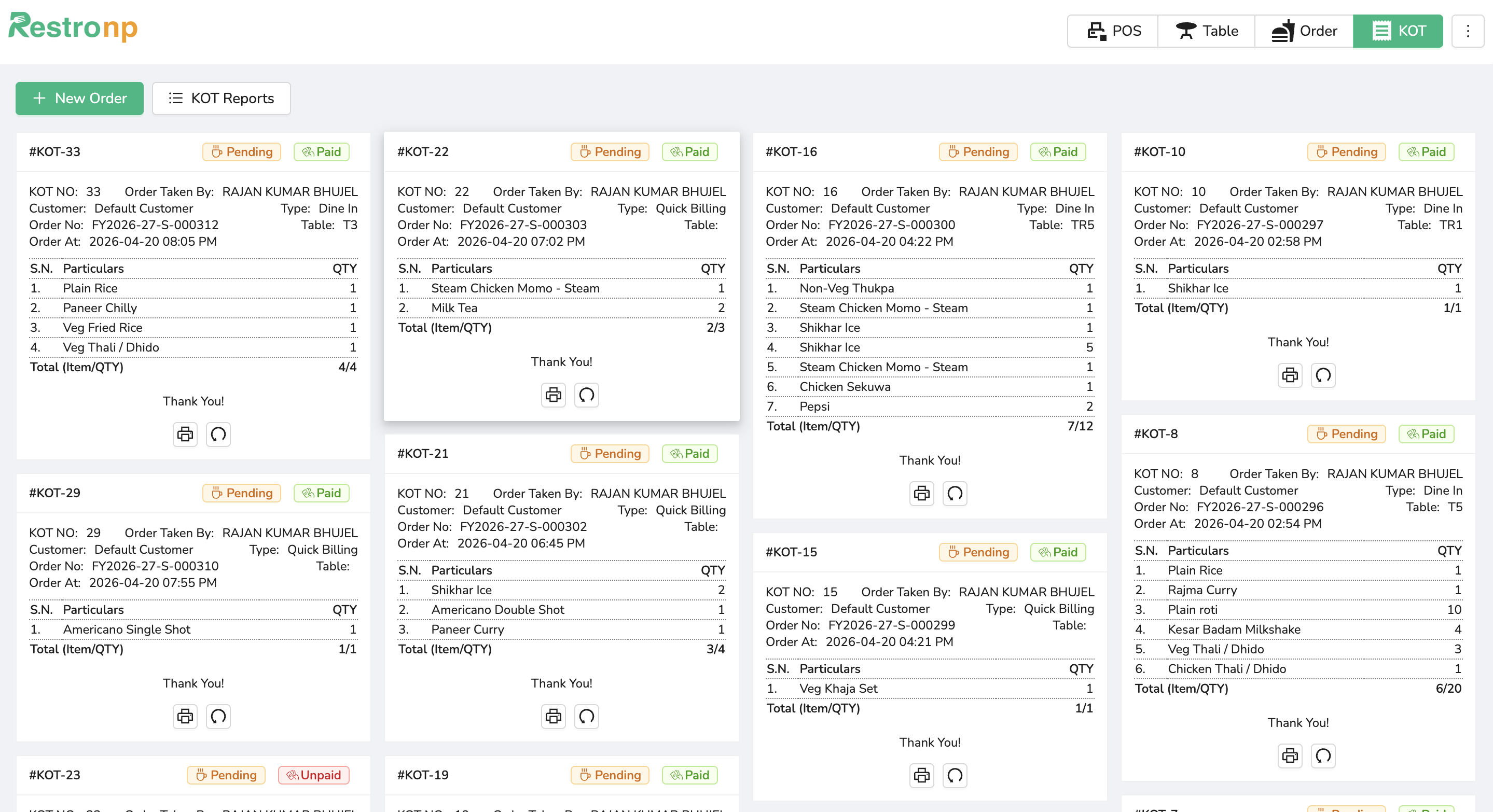 Our Pokhara restaurant uses Restronp’s KOT system for billing and order management. It saves time and reduces errors. Simple and efficient for Nepal’s food industry.